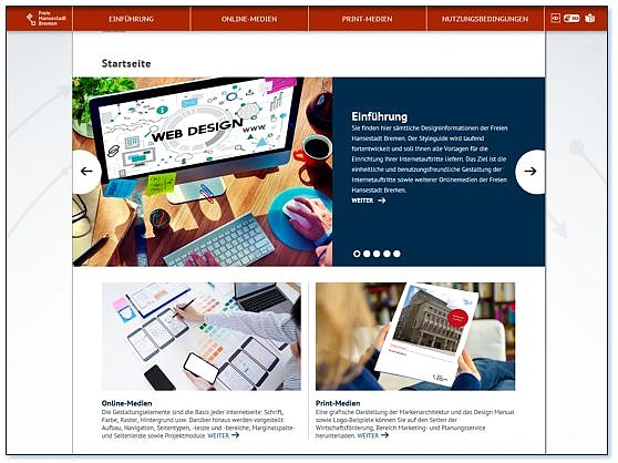 Es können großflächige Bilderkarussells an den Anfang der Seite gestellt werden. Anschließend kann die Seite mit unterschiedlichen Kacheln sehr variabel aufgewertet werden, ein paar Beispiele werden im folgenden aufgeführt.